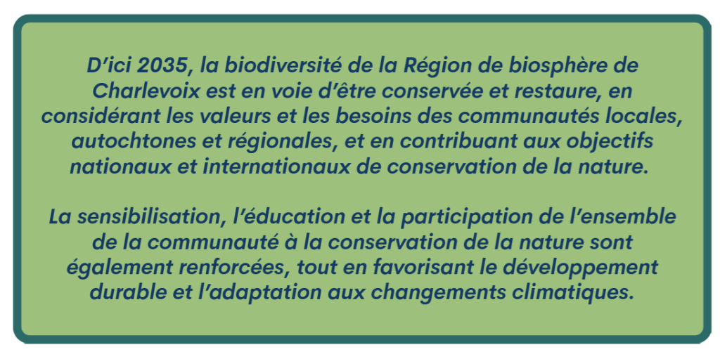 C’est dans cette perspective que la Région de biosphère de Charlevoix, en collaboration avec un vaste réseau de partenaires institutionnels, communautaires, scientifiques et citoyens, a entrepris l’élaboration d’un Plan intégré de conservation des milieux naturels et de la biodiversité.